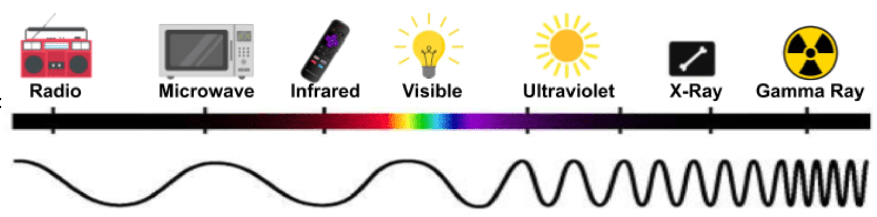 List the categories on the Electromagnetic Spectrum from lowest energy to highest energy. There are 7 categories.