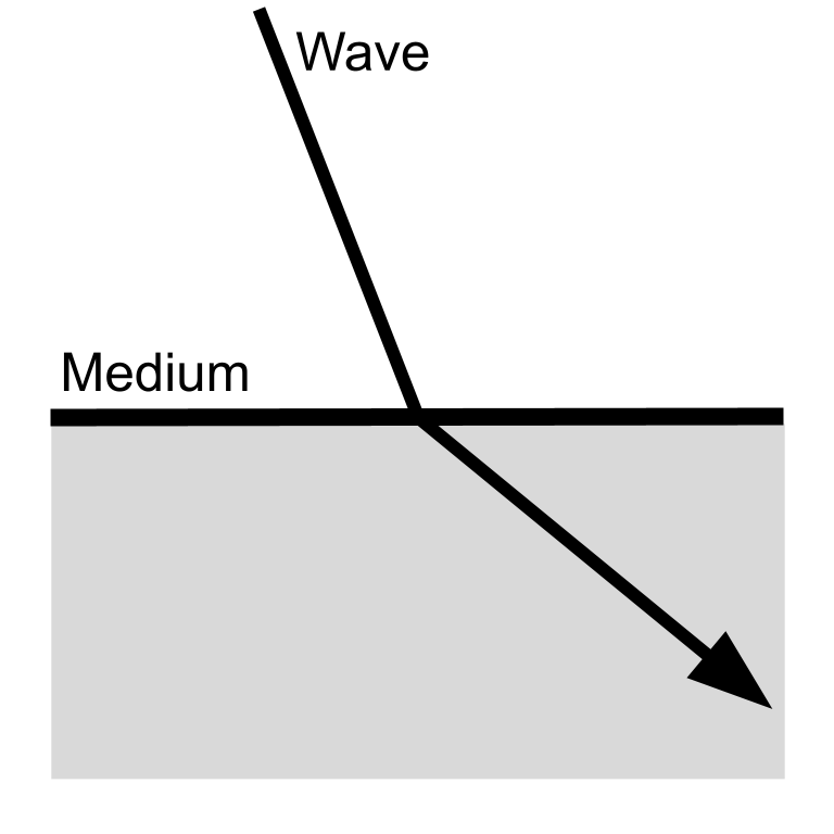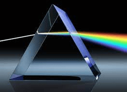 Refraction of white light bending through a glass medium and being pulled into the different colors. Violet has the most bending because it has the highest energy. Red light is the lowest energy, or slowest so it doesn't bend as much.