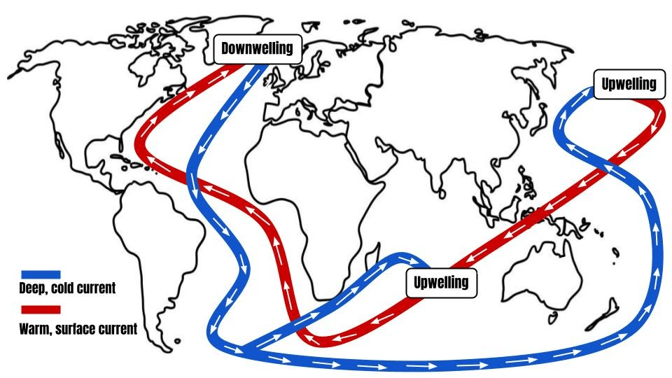 Saltier surface water coming from the equator gets cold and sinks, forming this current.