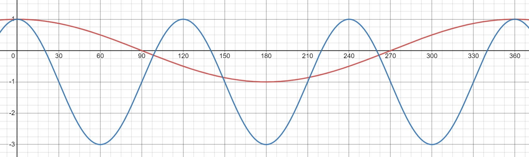 Describe the transformations from  f(x)=cosx to f(x)=2cos(3x)