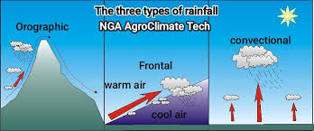 πŸ‘‰ Answer: Convectional happens when warm air rises and cools, but orographic happens when air rises over mountains.