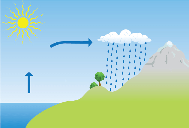Evaporation, Condensation, Precipitation (must have all 3)