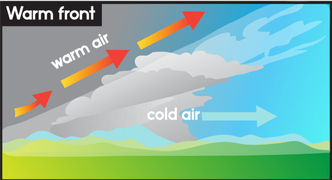 When a fast moving cold air mass pushes into a slower moving warm air mass, and pushes the warm air up, we may experience severe storms and we will have cooler weather. What type of front is this?