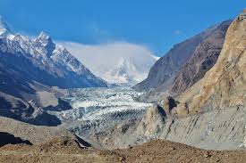 Erosion by _____________ often forms deep U shaped valleys like the one shown below.