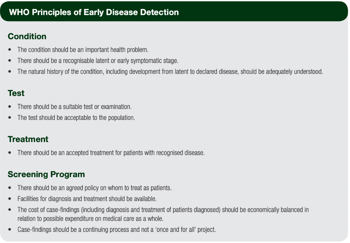 List 3 criteria for an effective population based screening PROGRAM (not the same as characteristics of a satisfactory screening test)