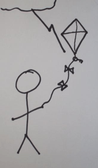 Aside from being the first Postmaster General of the United States, this man achieved fame from flying a kite in a lightning storm...as I've intricately illustrated.