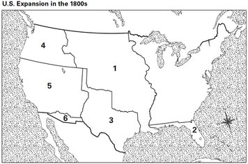 Using the map above, which two numbers indicate areas that were acquired through the treaty of Guadalupe Hidalgo?