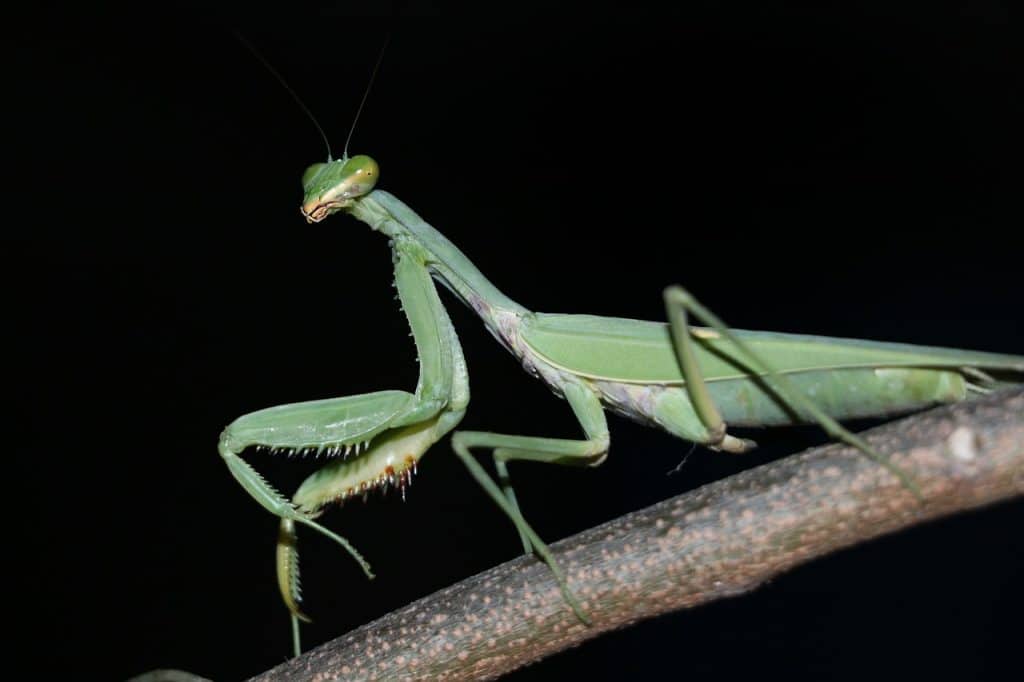 This carnivorous insect's head can swivel (turn) 180 degrees and only eats live food.