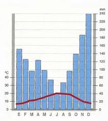 ¿Cuál de estos climogramas corresponde al clima mediterráneo costero?