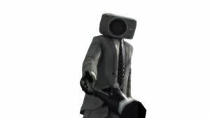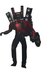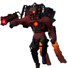 he has a sword and he has 1 tv on has head and 2 tvs on his shoulder and claws on his back and a core hes...?