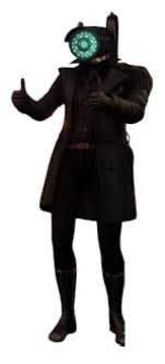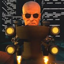 he has a camera and a side blaster and a hammer and hes a titan and he has 2 guns on his back and a jet pack hes
