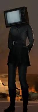 hes has a tv on has head  he has 4 tvs on has back hes..?