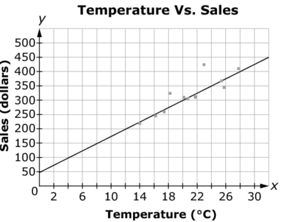 Estimate the y-intercept and slope of this line of best fit.