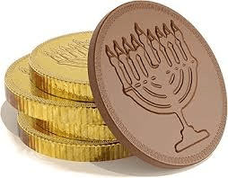 What are the chocolate coins called typically given out or won during Hanukkah?