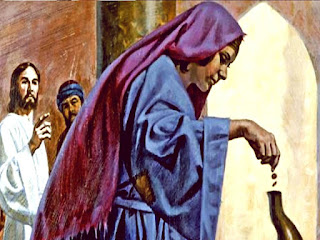 While Jesus and his disciples observed how the people were putting money into the treasury, they noticed rich people contributing large sums of money. But I was a poor widow who contributed two mites, which equaled two small copper coins or one cent.