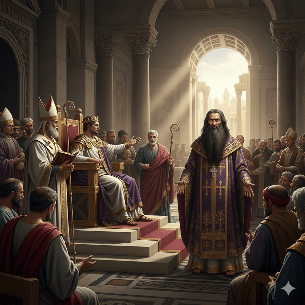 At the Council of Nicaea, this jolly saint slapped the tar out of Arius for his blasphemy.