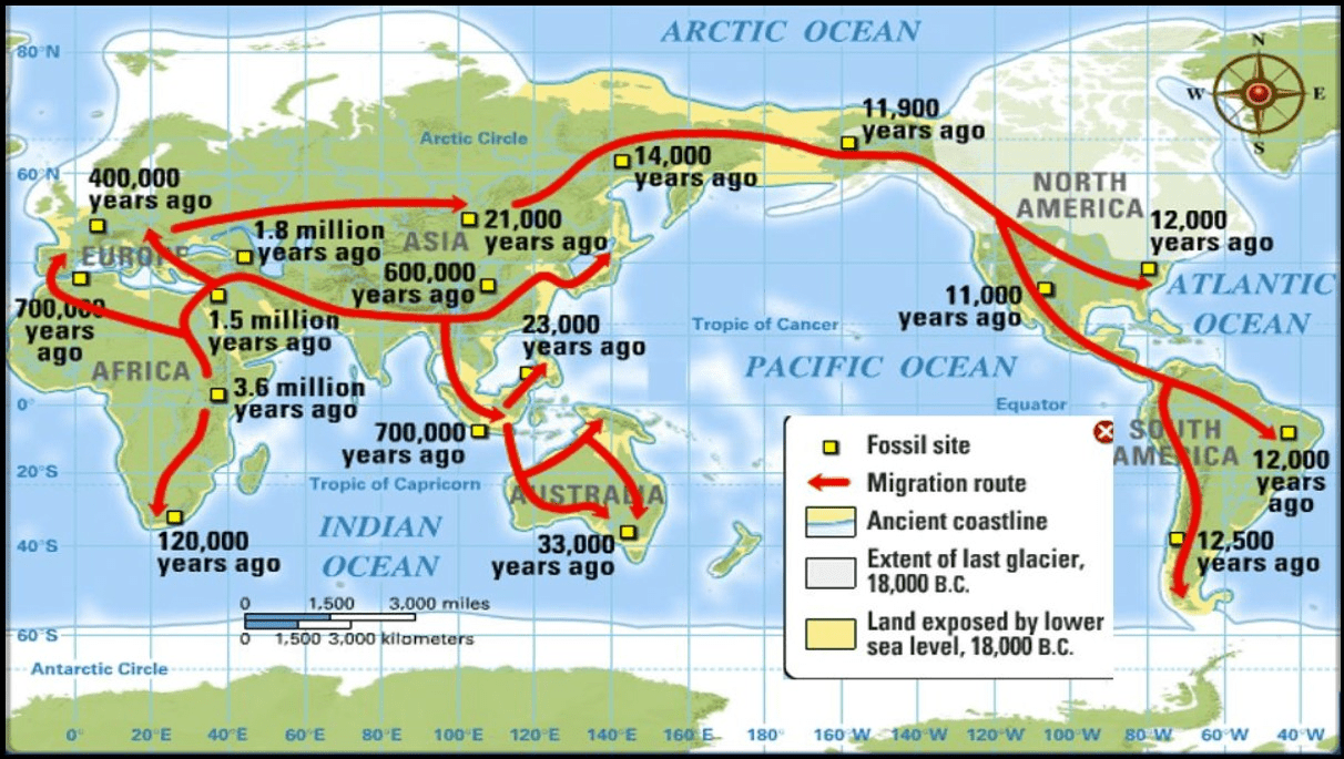 Early humans migrated across the world over millions of years.