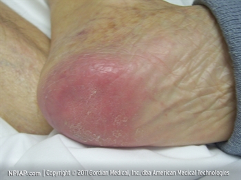I am angry red and diffuse. I am located around the buttock cleft and folds. I am often found in a soaked adult brief.
