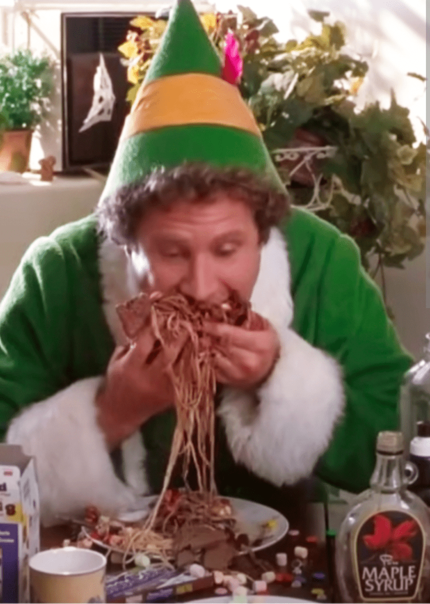 BUDDY from the movie ELF, he added chocolate syrup, marshmallows and pop tarts as toppings to this dish.