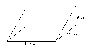 What is the volume of a rectangular prism with dimensions 12 cm x 8 cm x 9 cm?