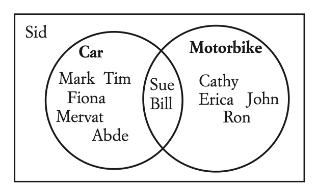 A group of people were surveyed on the type of vehicle they drove and the results are shown in the Venn diagram below.