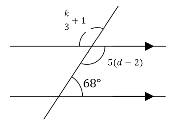 1. What will be the sum of the angles marked 68 degrees and 5(d-2), and why?