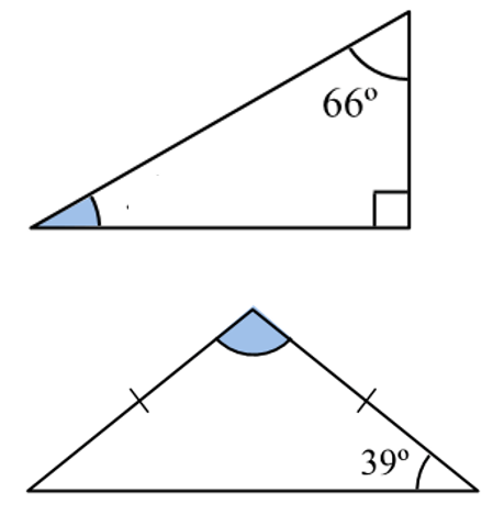 1.  24 degrees  (remember the square in the corner represents a right angle, or 90 degrees)