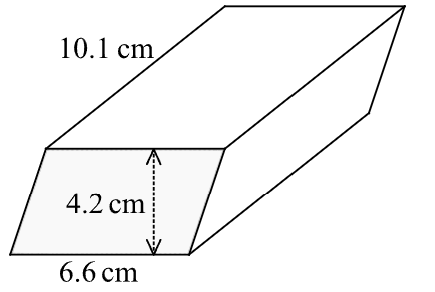 Find the volume of the following prism. Give your answer to the nearest cubic cm.