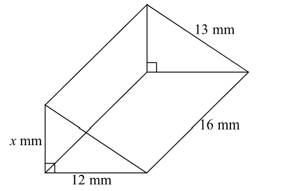 A triangular prism has a volume of 650m3. If the cross-sectional area of the prism is 52cm2, find the length of the prism.