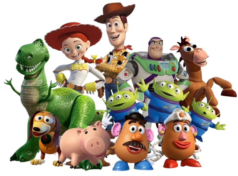 Woody, Buzz, Jessie, Bullseye, Hamm, Slinky Dog, Rex, Mr and Mrs Potato Head.