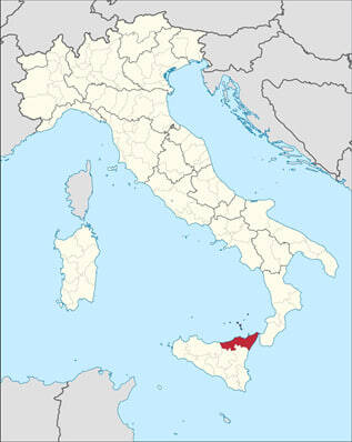 Suratda qizil rang bilan Messina provinsiyasi belgilangan. Bir saytda Messina provinsiyasiga U tegadigan shahar deya hazilnamo taʼrif berilgan. Savol: Uni unli harflar bilan boshlanuvchi ikki soʻzda yozib bering.