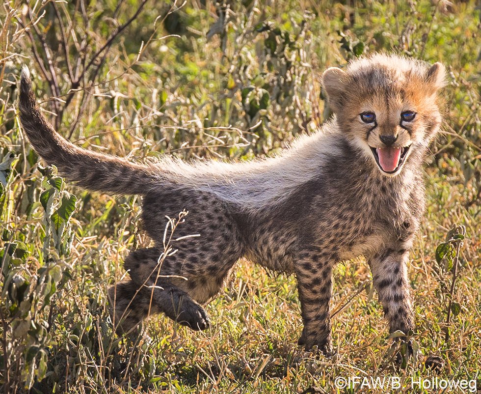 What mammal uses mimicry as a baby to look like a honey badger to protect themselves from predators while their mom hunts.