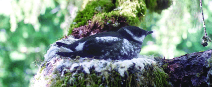 Trees with thick, moss covered branches are necessary habitat features for this primarily marine bird