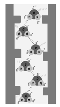 Which type of bond in water molecules rapidly break and reform?