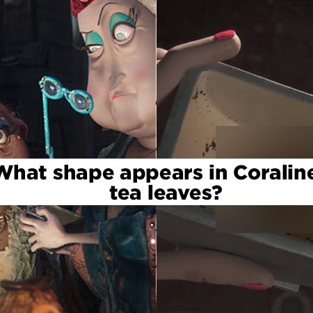 What shape appears in Coralines tea leaves?? 2 shapes have to be named