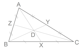 tre segmenti ceviani (segmenti che congiungono un vertice di un triangolo con un punto sul lato opposto) sono concorrenti (si intersecano nello stesso punto) se e solo se il prodotto dei rapporti delle lunghezze dei segmenti che dividono i lati del triangolo è uguale a 1