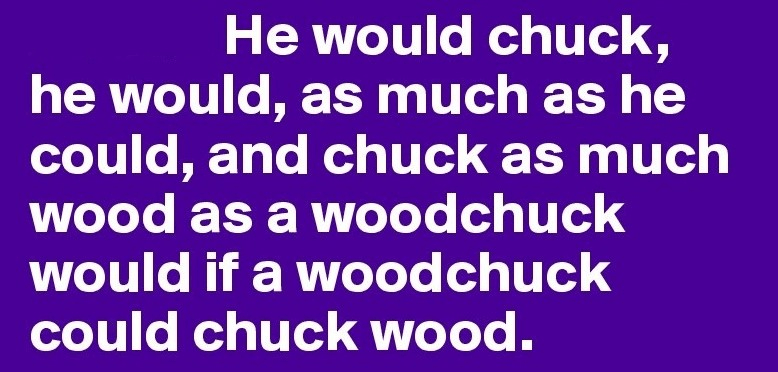 This is how much wood a woodchuck would chuck if a woodchuck could chuck would.