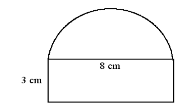 Karen’s picture below is in the shape of a rectangle and a half-circle. What is the approximate area of Karen’s picture?