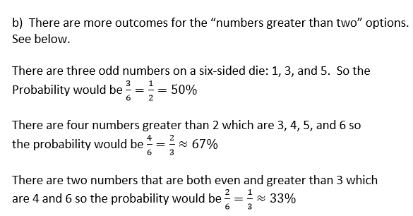 b) Rolling a number greater than 2