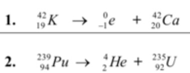 Determine the reactants of each nuclear equation! Write them using their chemical symbol, mass number, and proton number.