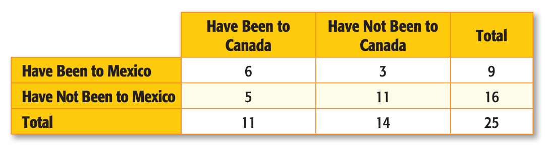 P("have been to Mexico")=9/25