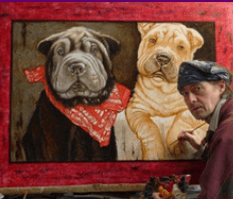 Hungarian artist Anton Molnar painted these two (nearly) famous Shar Pei puppies.