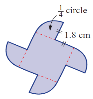 Calculate the shaded area for the shape shown below, correct to 1 decimal place.