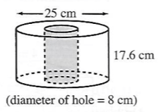 Calculate the volume of the pipe shown below, correct to 1 decimal place.