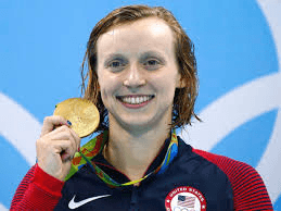 In her international debut at the 2012 London Olympic Games as a 15-year-old, this female swimmer unexpectedly won the gold medal in the women's 800-metre freestyle. In total, she has won five Olympic gold medals and 15 world championship gold medals, the most in history for a female swimmer.