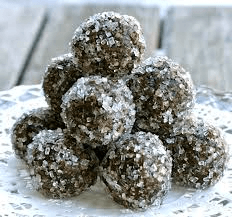 Round/oval candies filled with fruit preserves or cream and covered with chocolate