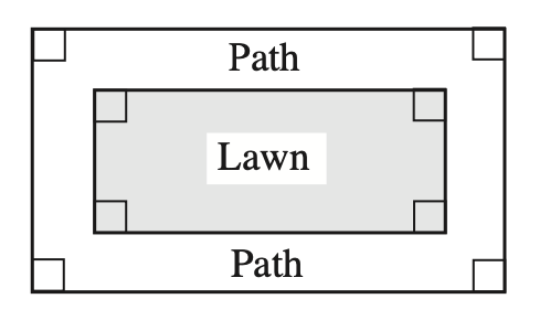 A lawn is 3m by 5m. A path 1m wide is laid around the lawn. What is the area of the path?