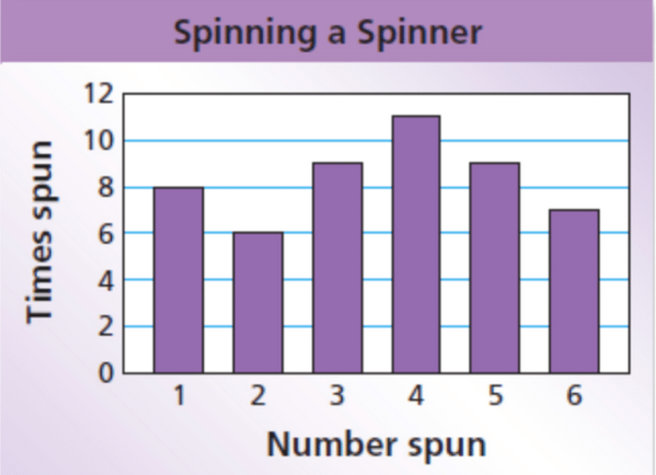 You spin a spinner 50 times. What's the experimental probability of spinning a 4 or 5? (Write your answer as a fraction in simplest form)
