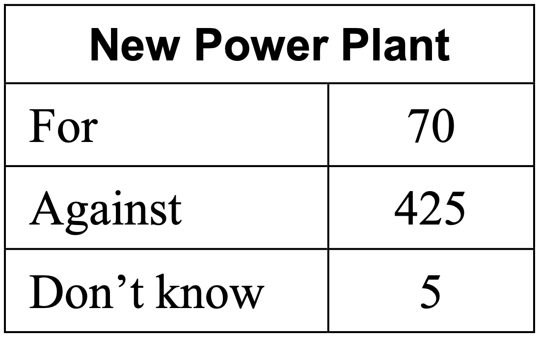 You survey 500 people in town about if they want a new power plant or not. Predict how many people in the town want a power plant if there are 60,500 residents total.
