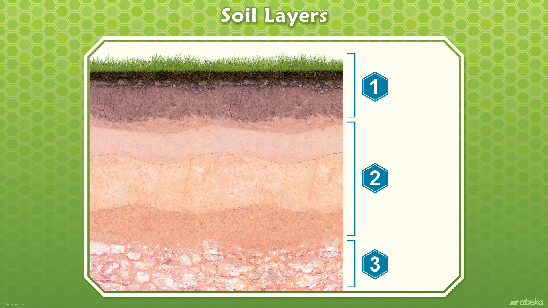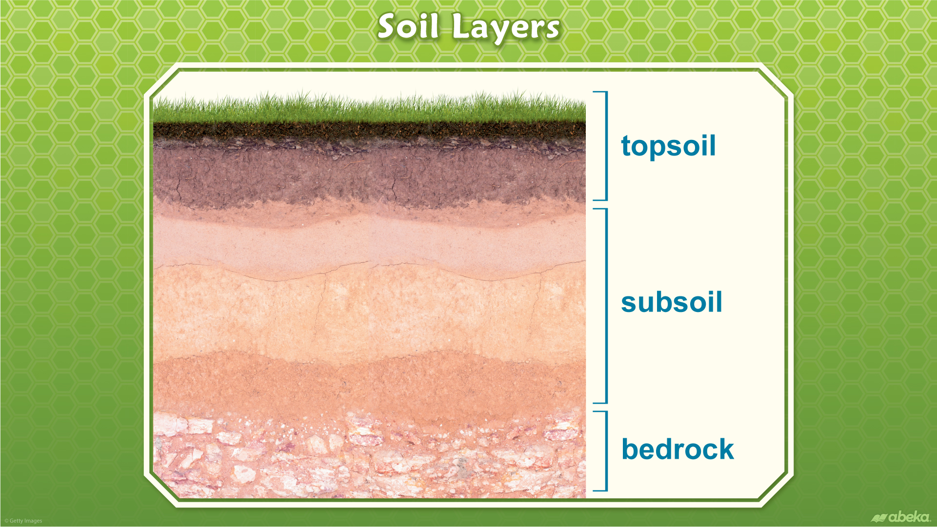 Using the chart, point out the bedrock, subsoil, and topsoil.
